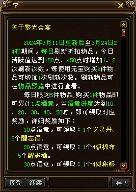 30点酒意:可领职:1个4级秘银10个醒志酒
