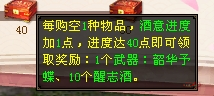 40点酒意:可领职:1个武器:韶华予蝶、10个醒志酒