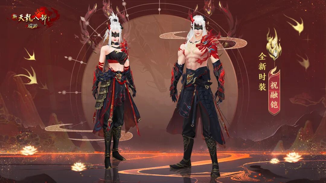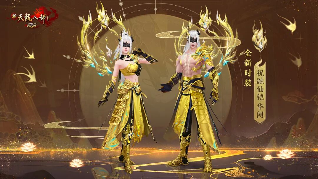 5月6日,伴随十七周年庆典活动正式开启,全新祝融系列时装也将同步上线!经典天龙首套全景特效时装:祝融仙铠·金阙,同款外观:祝融仙铠·华阙和限定时装:祝融铠即将与少侠们见面。