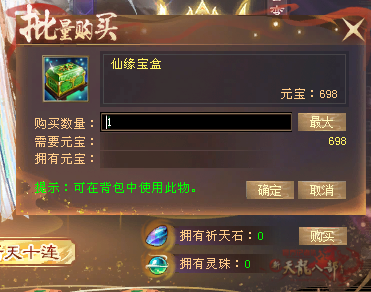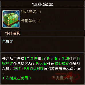 打开仙缘宝盒可获得:5个灵珠和1个祈天石。
