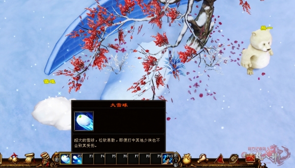 大雪球可攻击玩家,小雪球可攻击地图上的鸭一(119,227)、兔一(223,176)、熊一(178,78)等小动物朋友 。