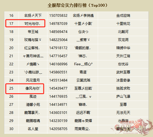 忆焦点ˇ(十里桃花,全服帮会实力排行榜第十七)