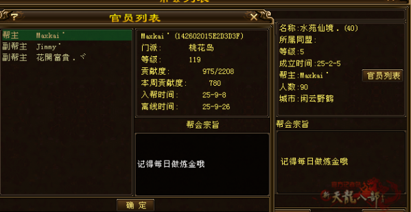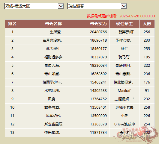从区内50名排行榜来看就看出来大号们均不在一个帮会里,于是翻阅帮会峥嵘榜,才发现有架存在: