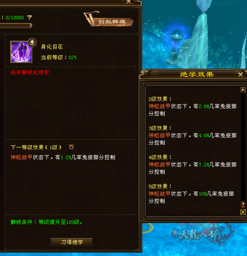 绝学改动:神枢战甲状态下,有10%几率免疫部分控制。