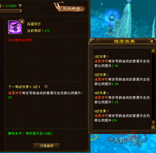 绝学是提升诸葛神弩的伤害比例,最高10%。