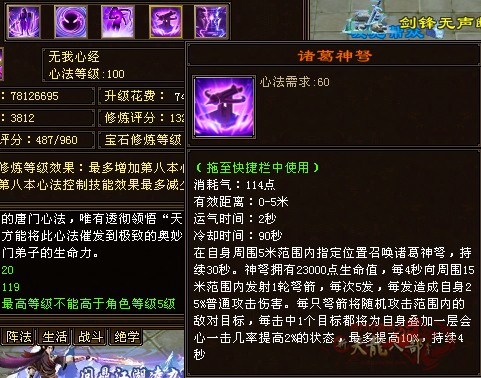 需要运气2秒,在指定位置召唤出一个诸葛神弩。