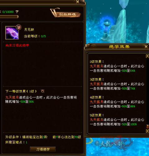 绝学是造成会心一击时,此次会心一击伤害将随机增加-50%至100%。