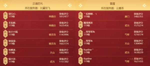 还是双绝情谷对战双武当的阵容,结果全程一边倒,完全是【正道的光】的主场。整场战斗未出现任何胶着,最终【雷霆】双武当均被逼至残血,而【正道的光】双绝情谷仍保持近乎满血的状态。