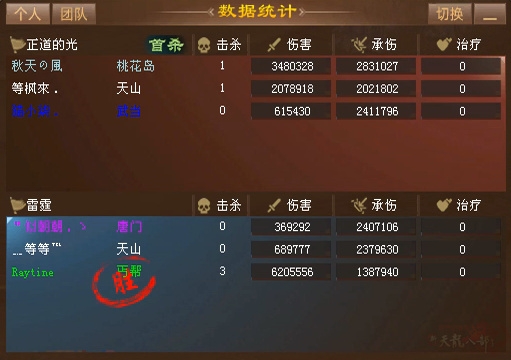 之后【雷霆】再斩天山,但自家唐门血量已经见底,好在最终形成3打1优势,顺利拿下桃花岛。