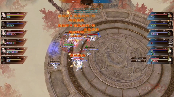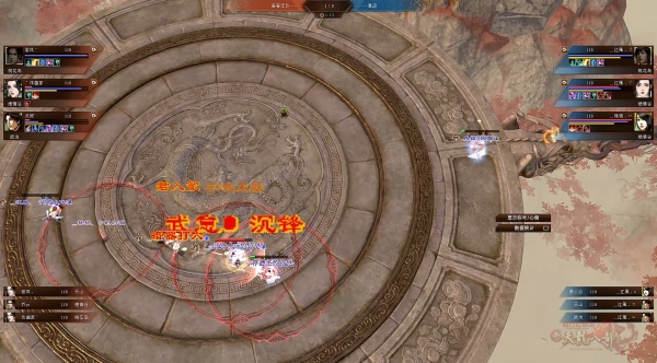 双方隐身出场,直接移动到场中央就连开咆哮,直接点燃战火,全员直接陷入混战!