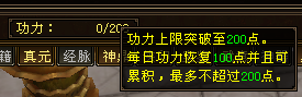 然后就是修炼相关的,角色的功力值上限由100点提升至200点。