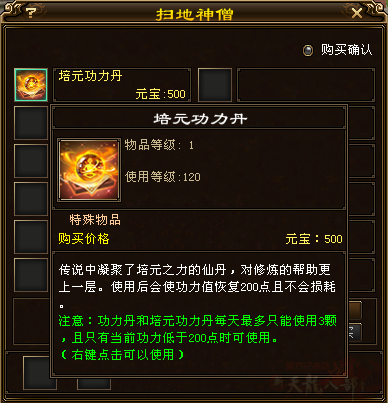 新出了“培元功力丹”:功力值低于200点可使用,使用后使功力值恢复200点,