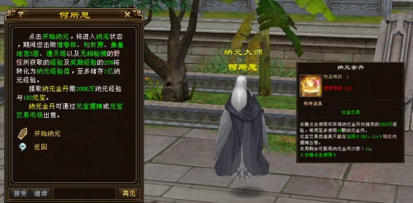 关于经验纳元:需要先去大理NPC纳元大师(260,153)处开启纳元状态,