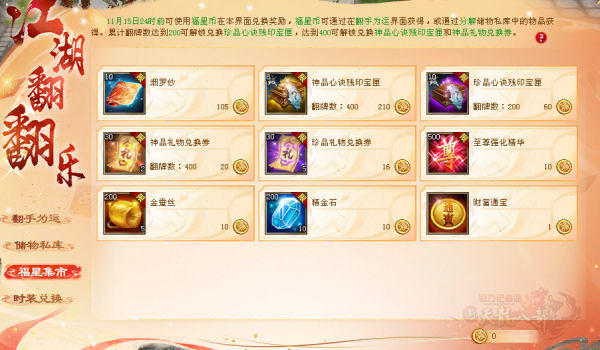 通过福运牌获得的奖励将会放置于诸物私库内。