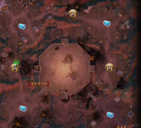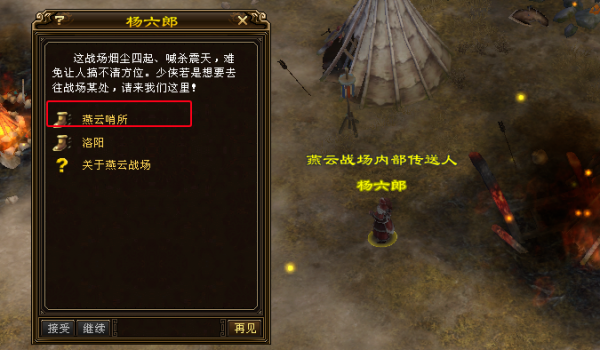 5个场地的传送顺序:燕云边关→燕云哨所→燕云营门→辽军大营→百战烽火台(传送NPC是位置在地图上会显示)。