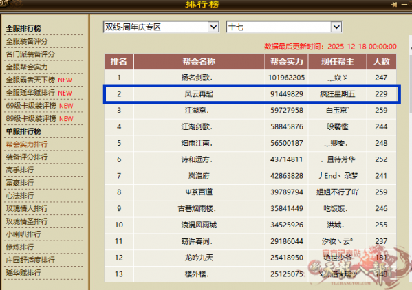锋芒双线——铁马冰河区于2024年6月开服,当时一位名为“山河”的玩家一骑绝尘拿走新服欢乐月(也就是名动江湖榜)第一名重楼戒;