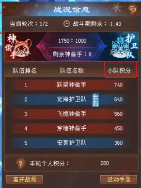 积分规则:队伍积分是3人总和,右侧战况栏能实时看排名,积分越高奖励越好。