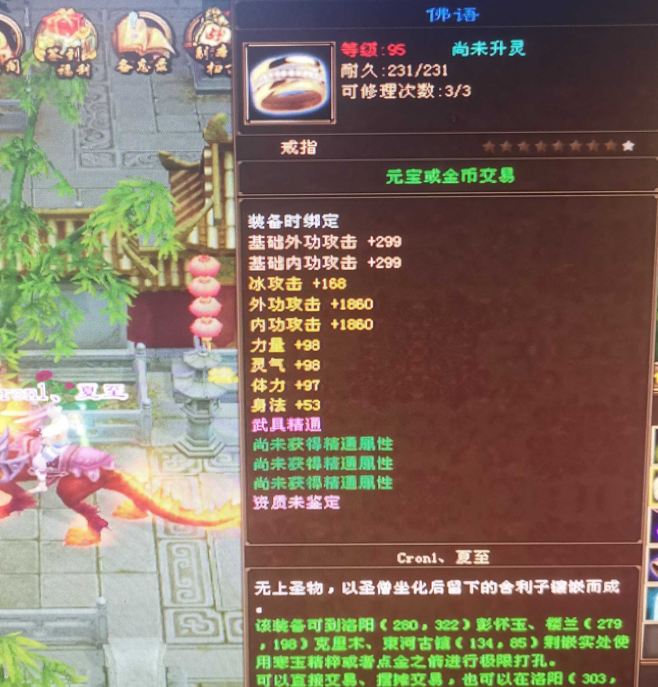 单属性还没有会心,一万一可以卖了,这种装备本来就不好卖的
