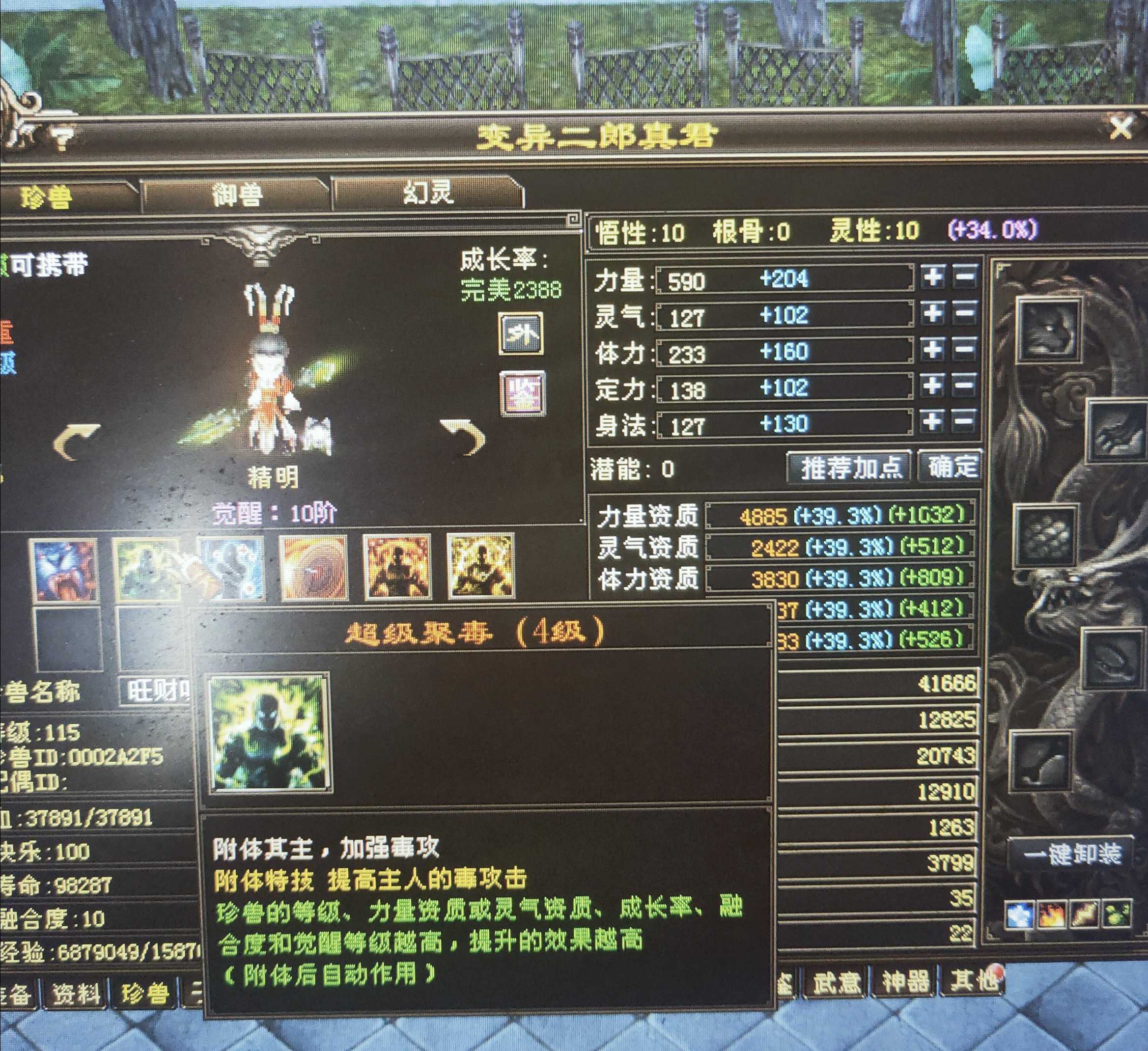 刚上线,就看到有人刷喇叭,喊4毒附体30,卖8000元宝,等我过去看变成了7000这个附体,43332的