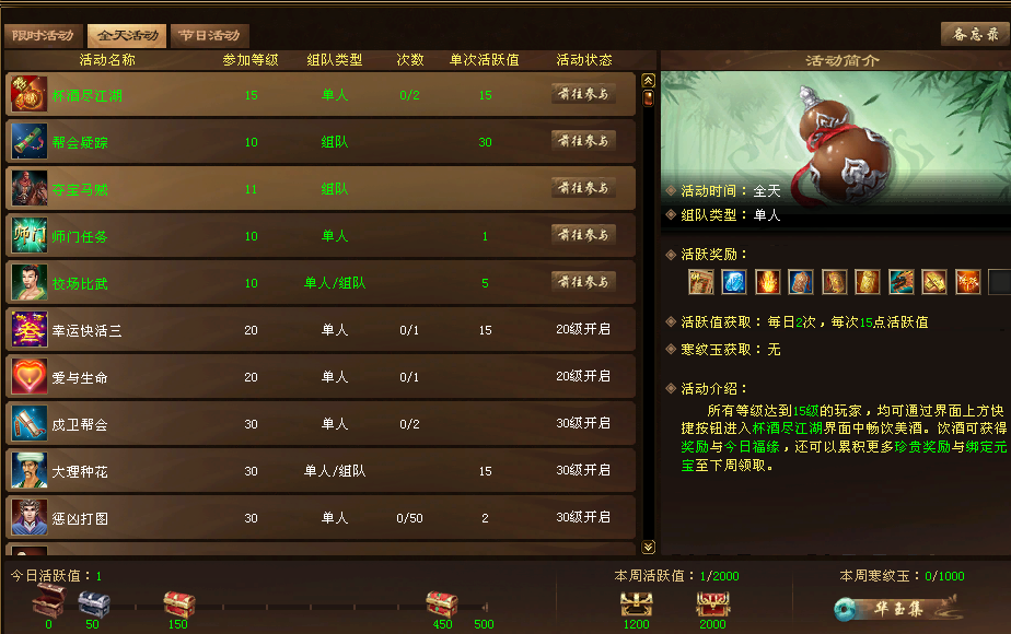 | 你吧活跃降低了,还玩个毛线,整天刷副本,哪有时间去打架,感情我们花那么多钱就是为了刷副本的,要不你就把活跃取消了 |