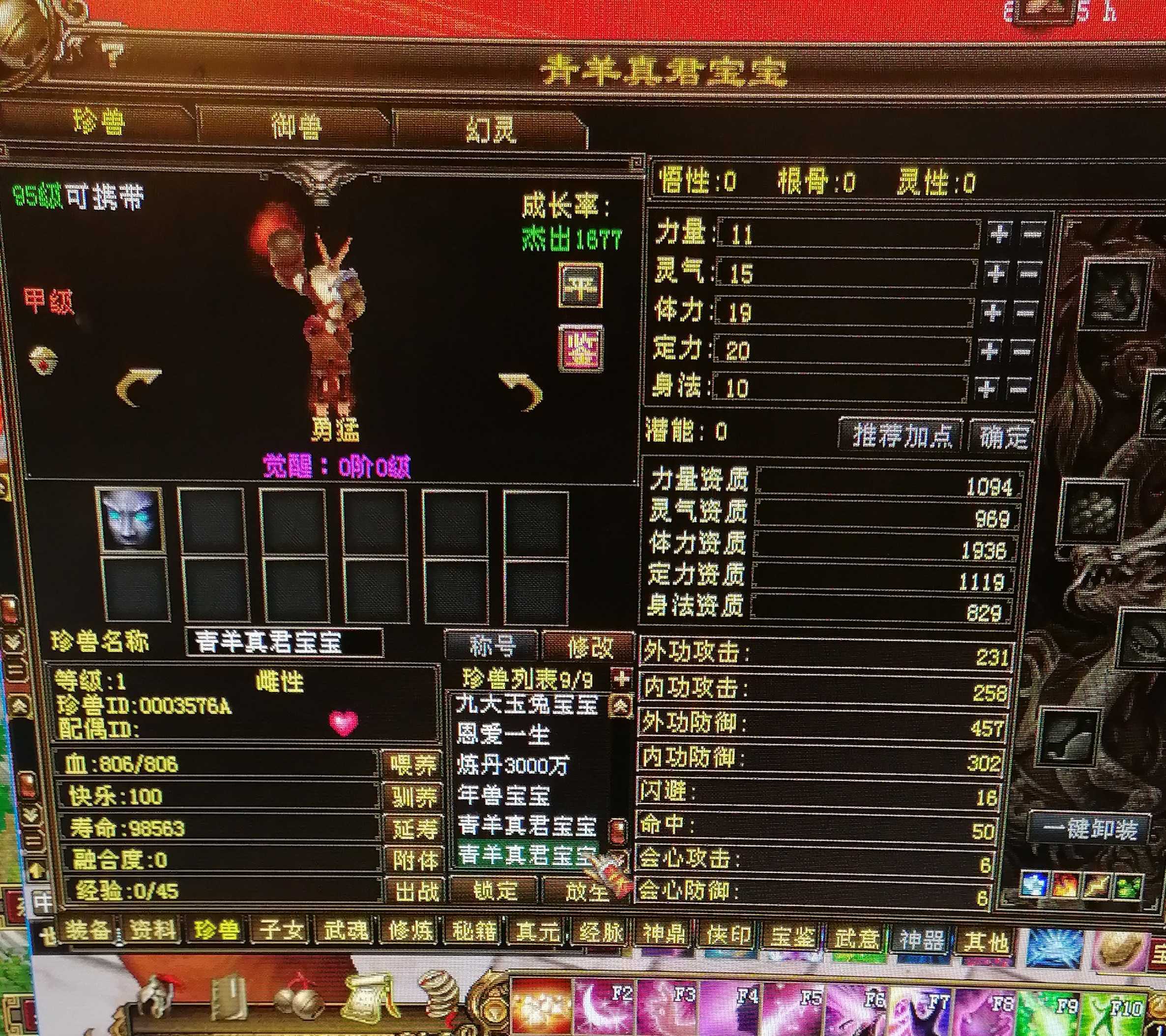 这宝宝血量还是不错的,刚出来,我就是生的这宝宝,2400对资质,虽然丑了点,但是实用