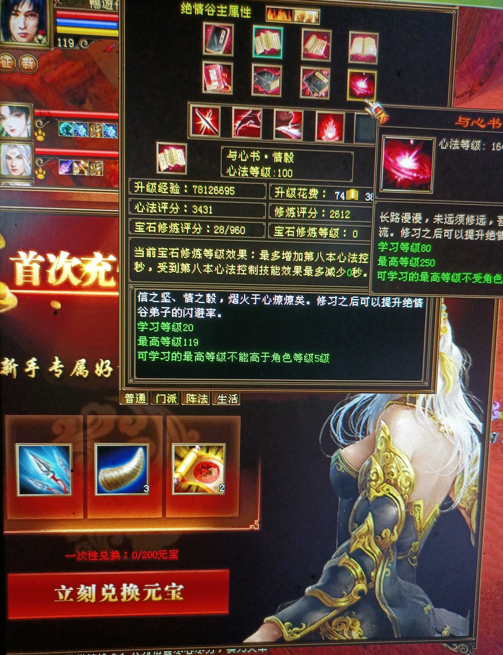 等级119,心法有点拉了,修炼每天3个功力丹,展示下你们练的新门派