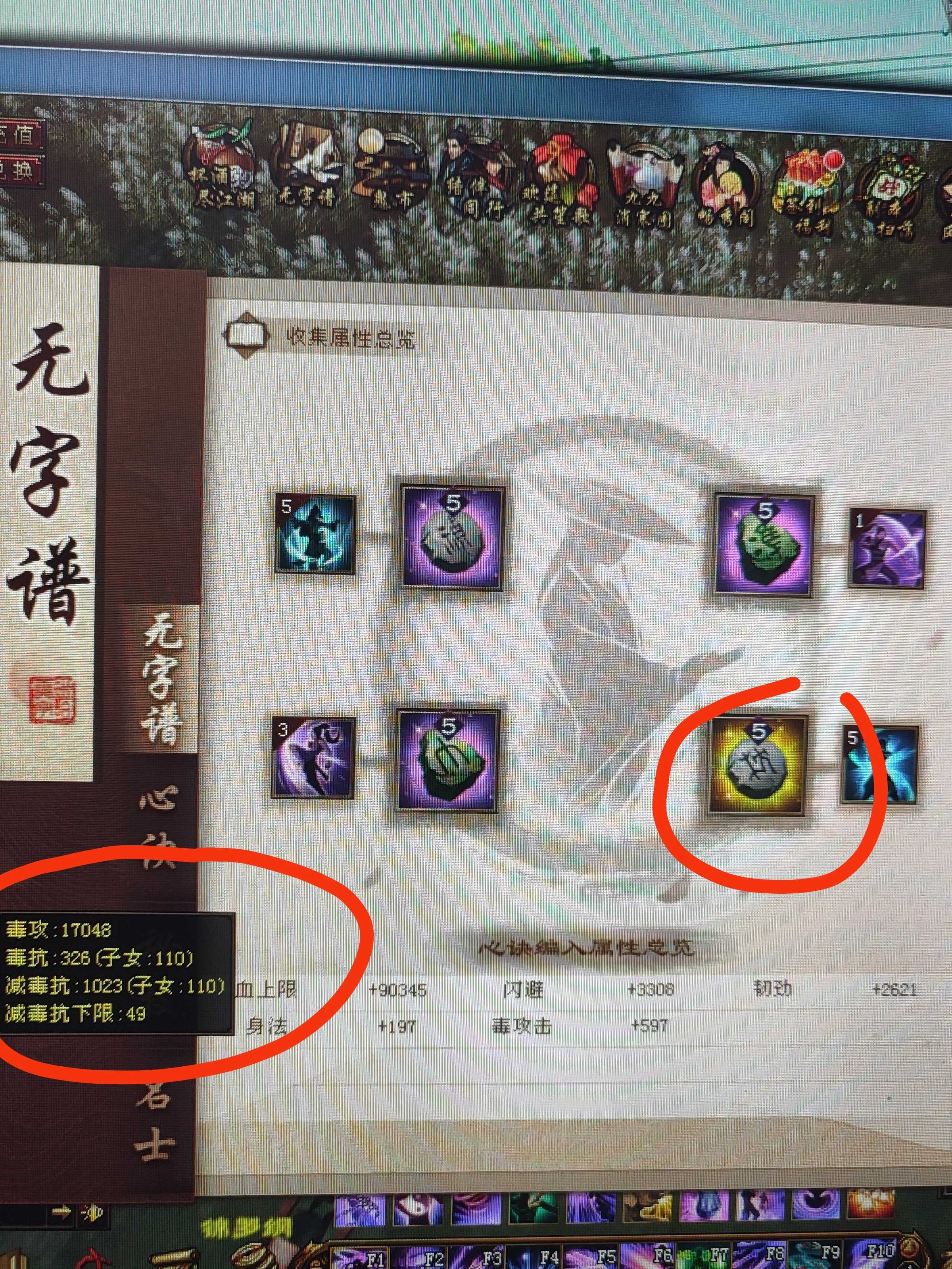 无字谱用枕戈替换高门毒以后,属性降了287,这个没问题,再换回高门毒,属性不加回来。。。依然是少了287,这是什么情况??重启也不行。在线求助,有遇到一样的情况吗? ...