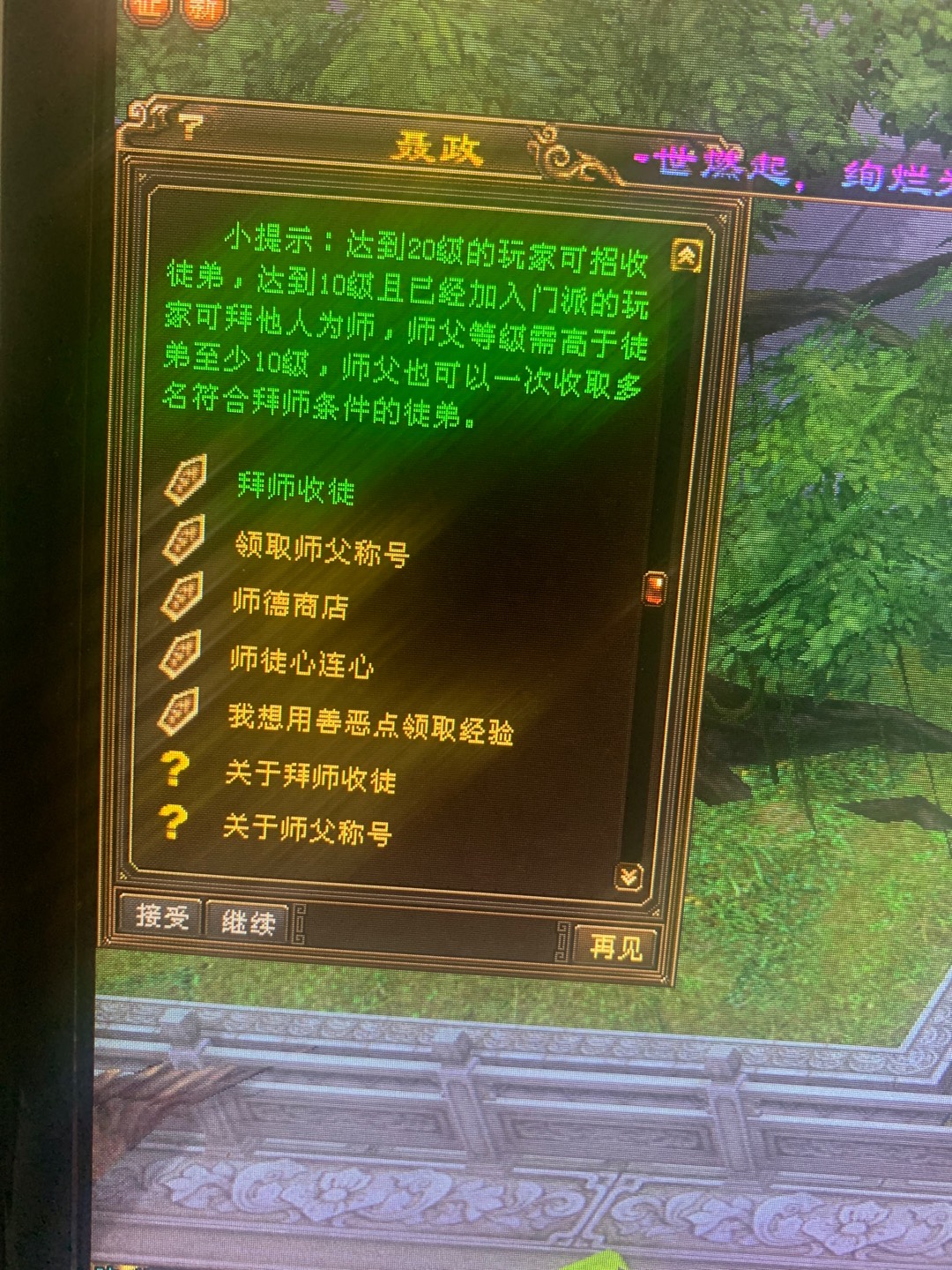 好友——江湖关系——师徒选项里