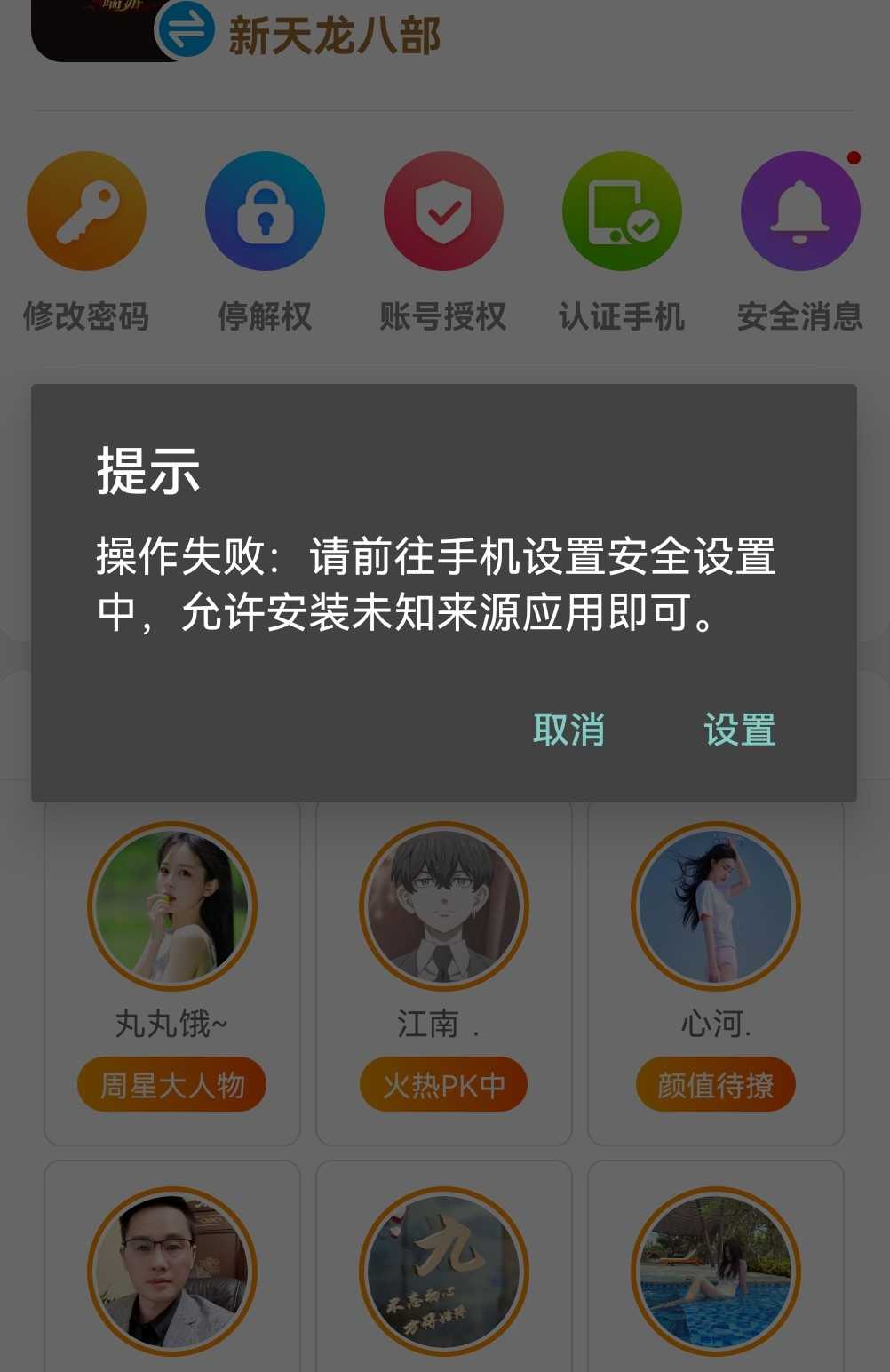 一般更新的时候需要在手机安全设置允许安装未知来源应用。我还可以验证,但验证后发现帐号登录提示没了