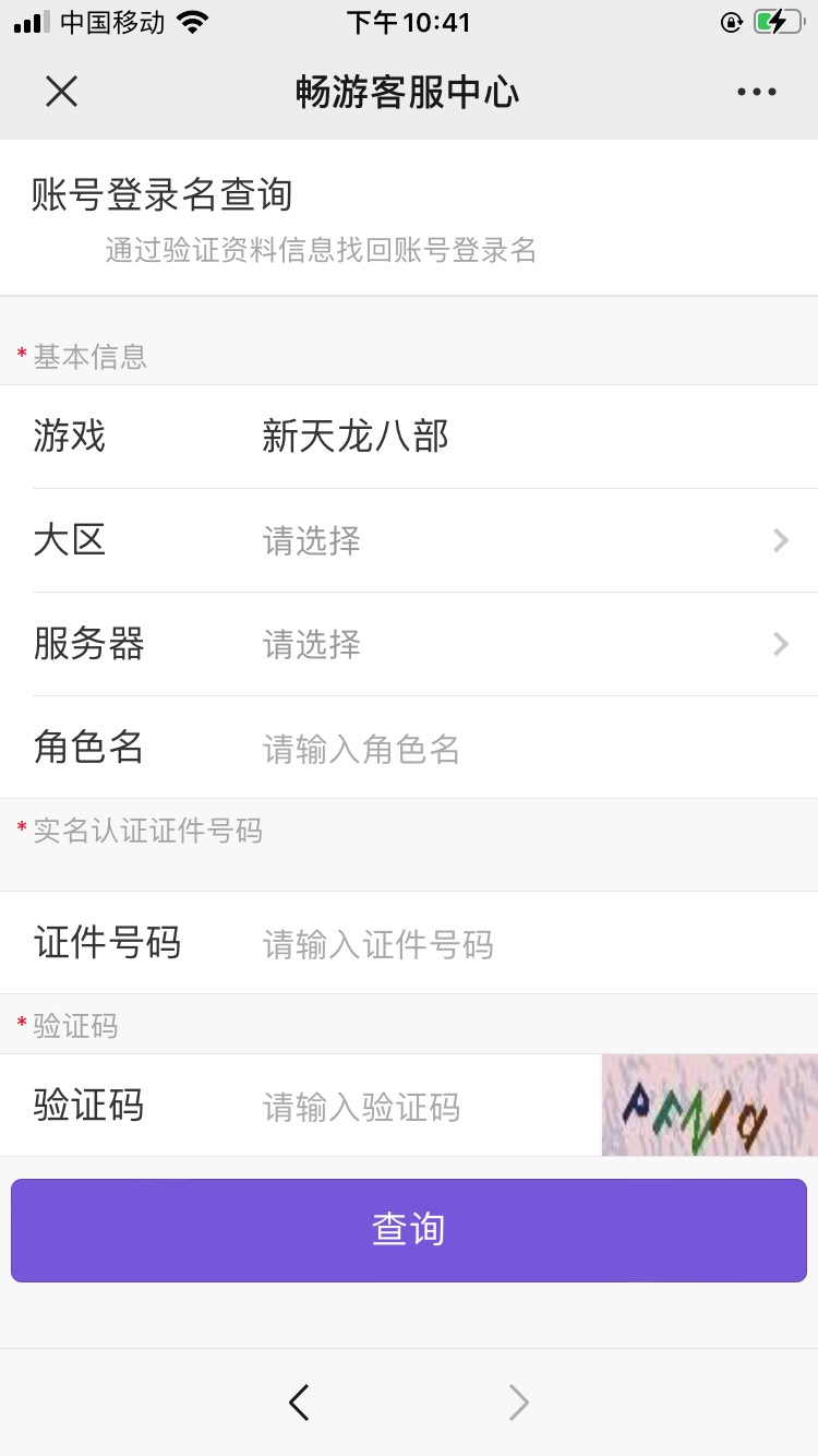 畅游官网自助服务,有个角色查询好像,选择手机号
