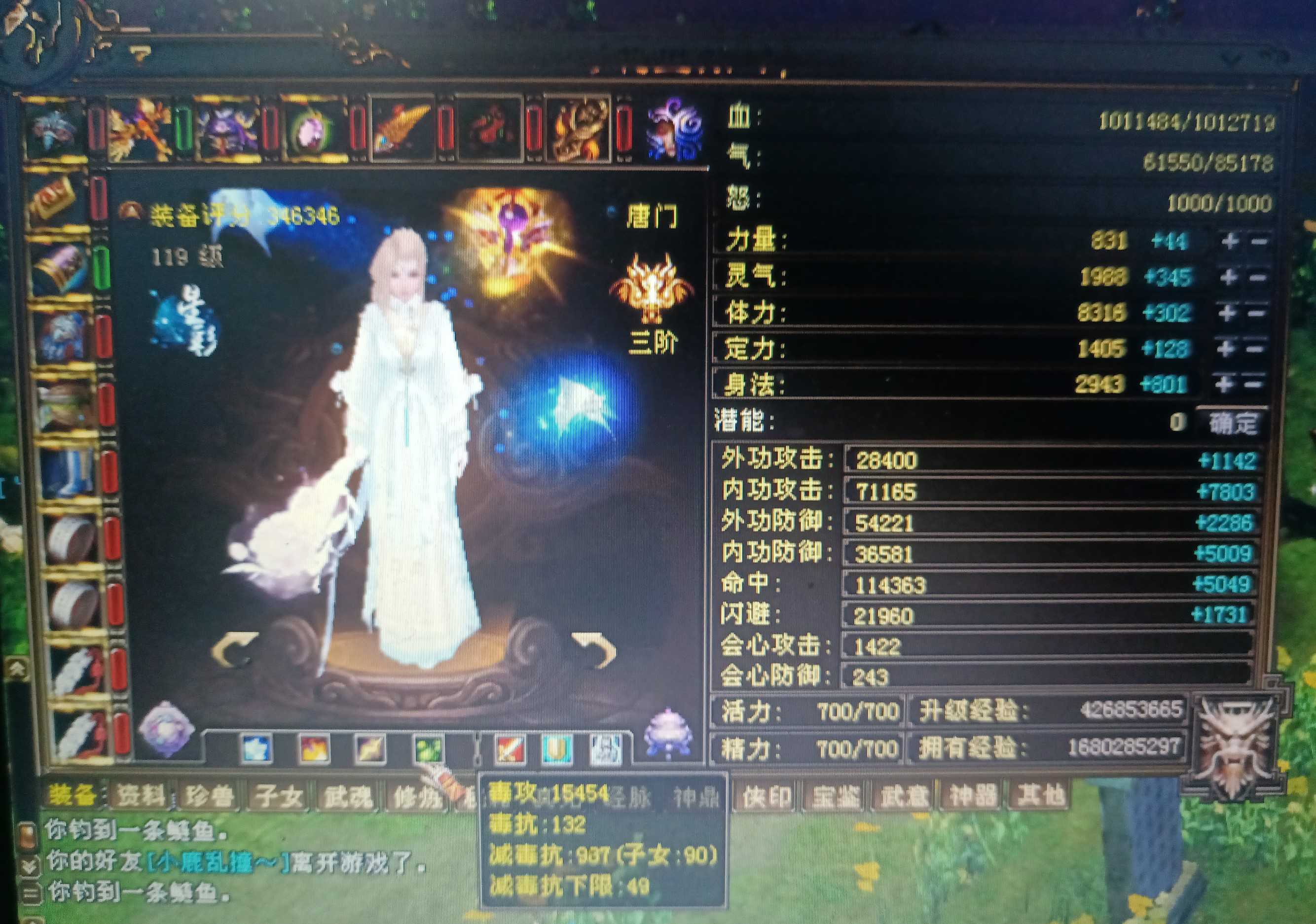 整体来说,血量一百万,主属一万五,命中十万,会心一千,算合格,当然也有不完美的一些地方 首先,此号不是主毒抗,而是火抗,目前只有防具一排石头与无字谱增加火抗值 其次,此号天道满,但全身装备最低六星,最高 ...