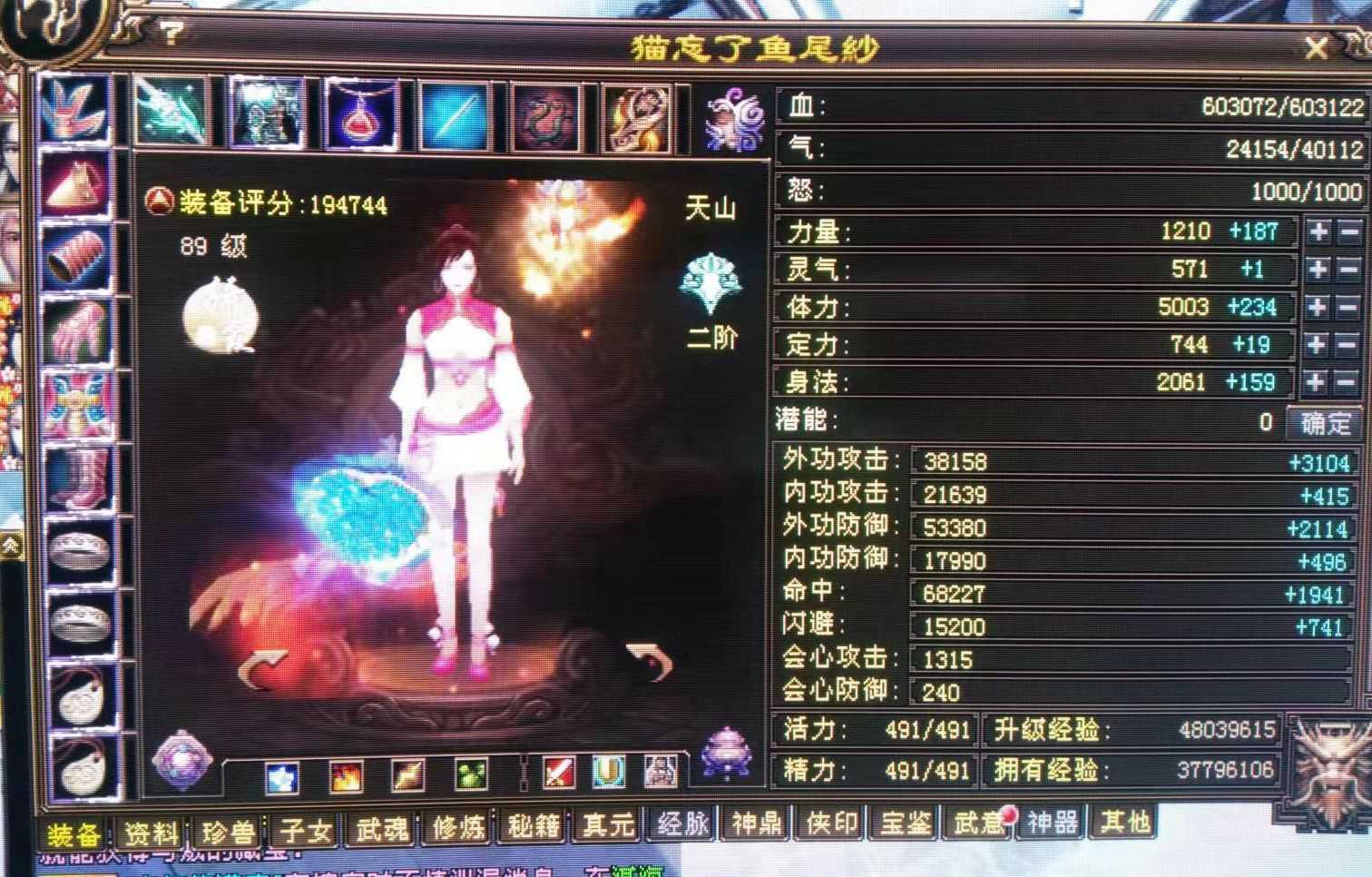 我十九万 卡89天山 9.6命中 58w血 9800属性