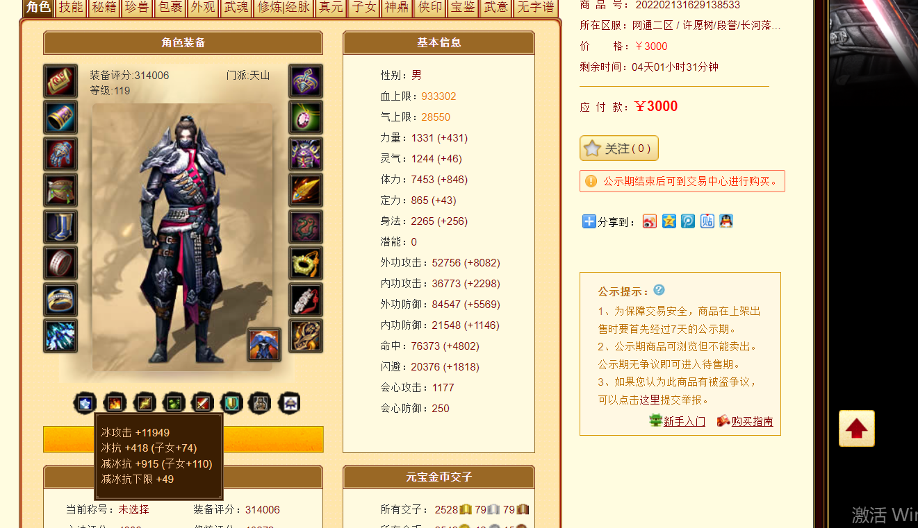 挑战31w分属性最低天山