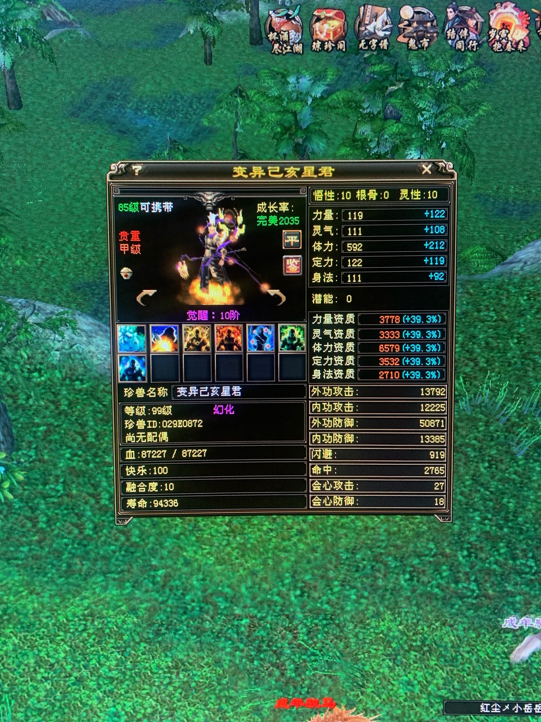 定制虎裸资3218,成品6005,附到身上7614,自己对比一下吧,估计是批的图,生的变异最高见过力资3003(旧)的宠物,悟灵相加的,现在想起来还很可惜