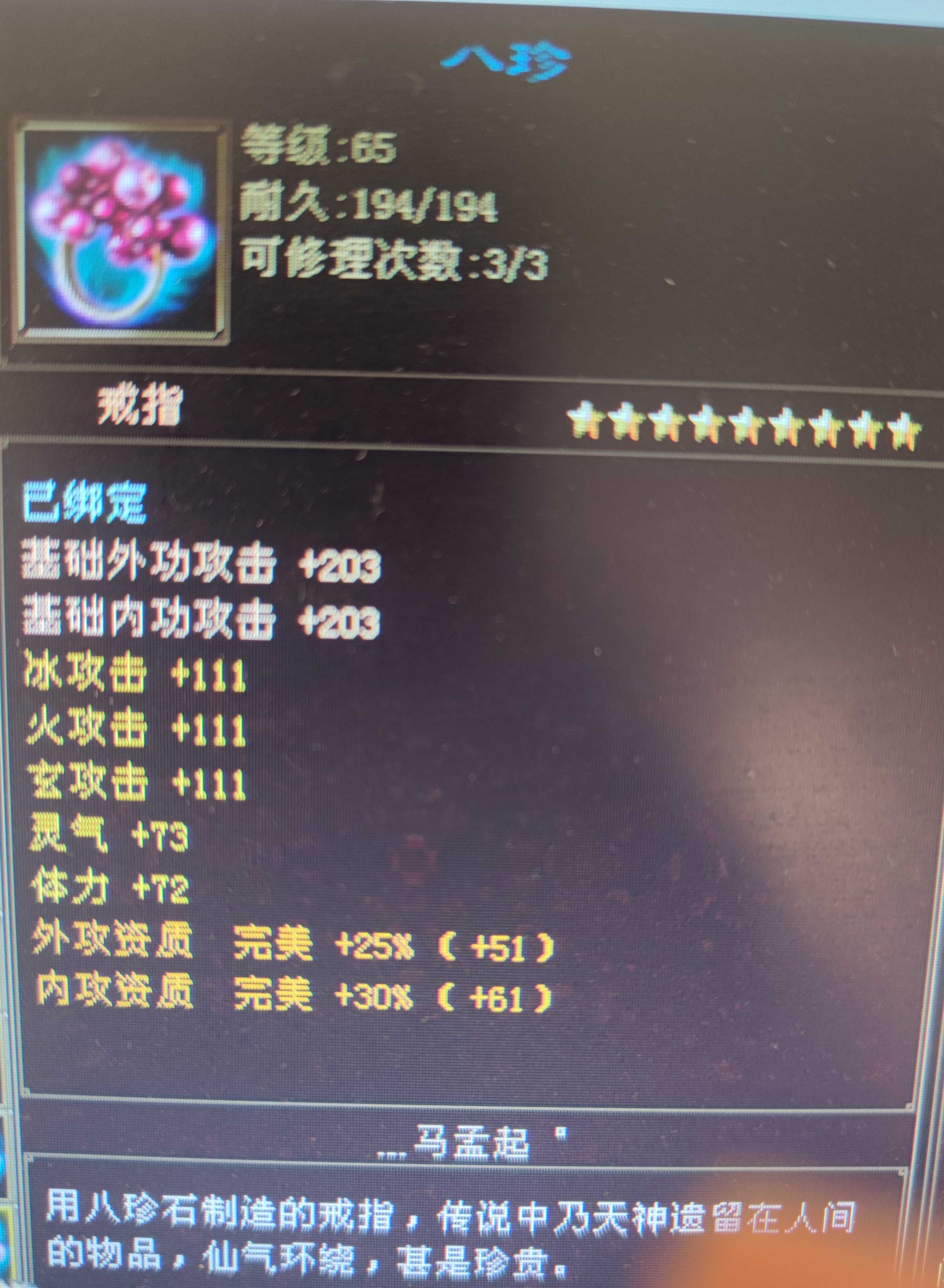 雨夜残月丶 发表于 2022-3-4 22:48 比我的8星多了4点属性,稍微小了点