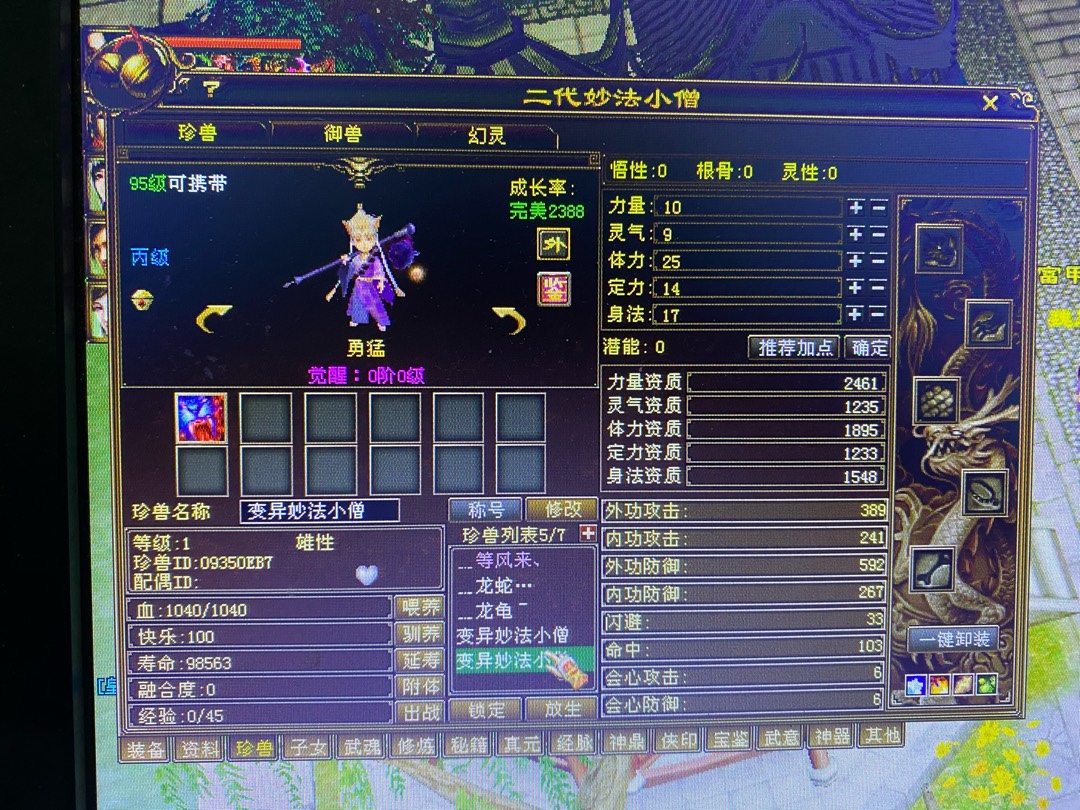 老区,7变大完美和尚,2211资质,1100刷喇叭卖,都没人问。大完美5变年兽,2205资质,888元宝挂钱庄10天了依旧还卖不掉。