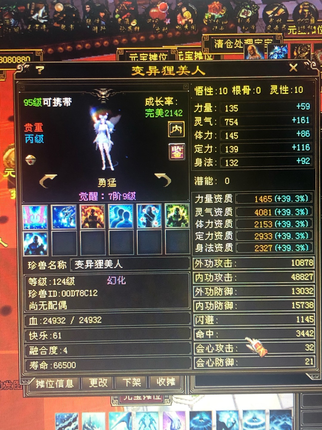 我一只黑狐狸跟你这资质差不多,融合也没怎么提,3000卖了,融合提到10还能值点钱,融合不到10就算了,卖不上价