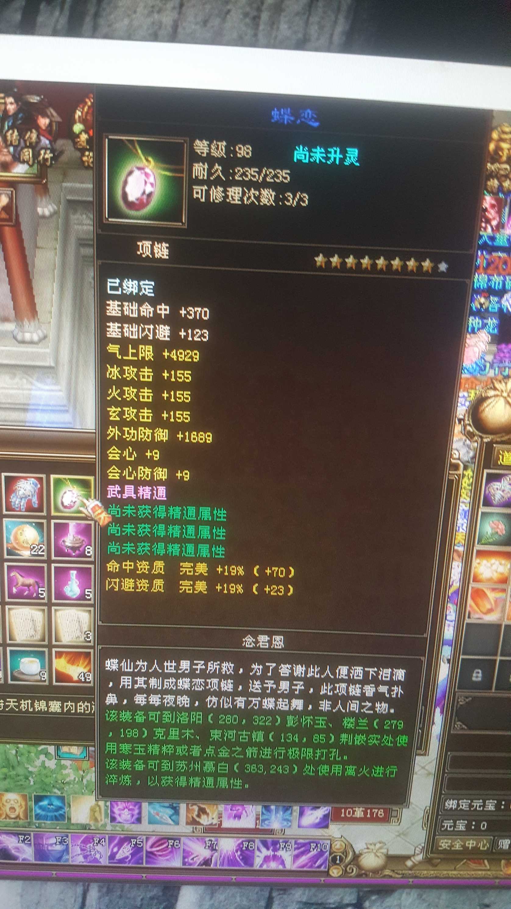 2015年那会做了个8星火玄毒6属性项链,没血没体,以为不值钱,挂钱庄5888元宝被人秒了
