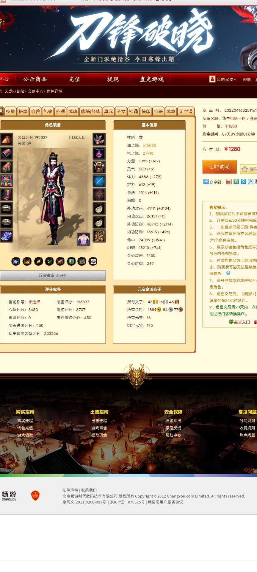 出个89卡级天山有需要的可以去畅易阁看看,低价处理了