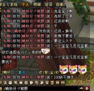 直奔主题。 本人洞庭秋月玩家,今天找了个洗宝宝的活计,交易过后就没动静了,其实宝宝400元宝买的不值钱,主要是比较恶心。 把这个家伙爆出来大家注意,骗子少一个是一个,也不知道这些人为了几百元宝干这些勾当能 ...