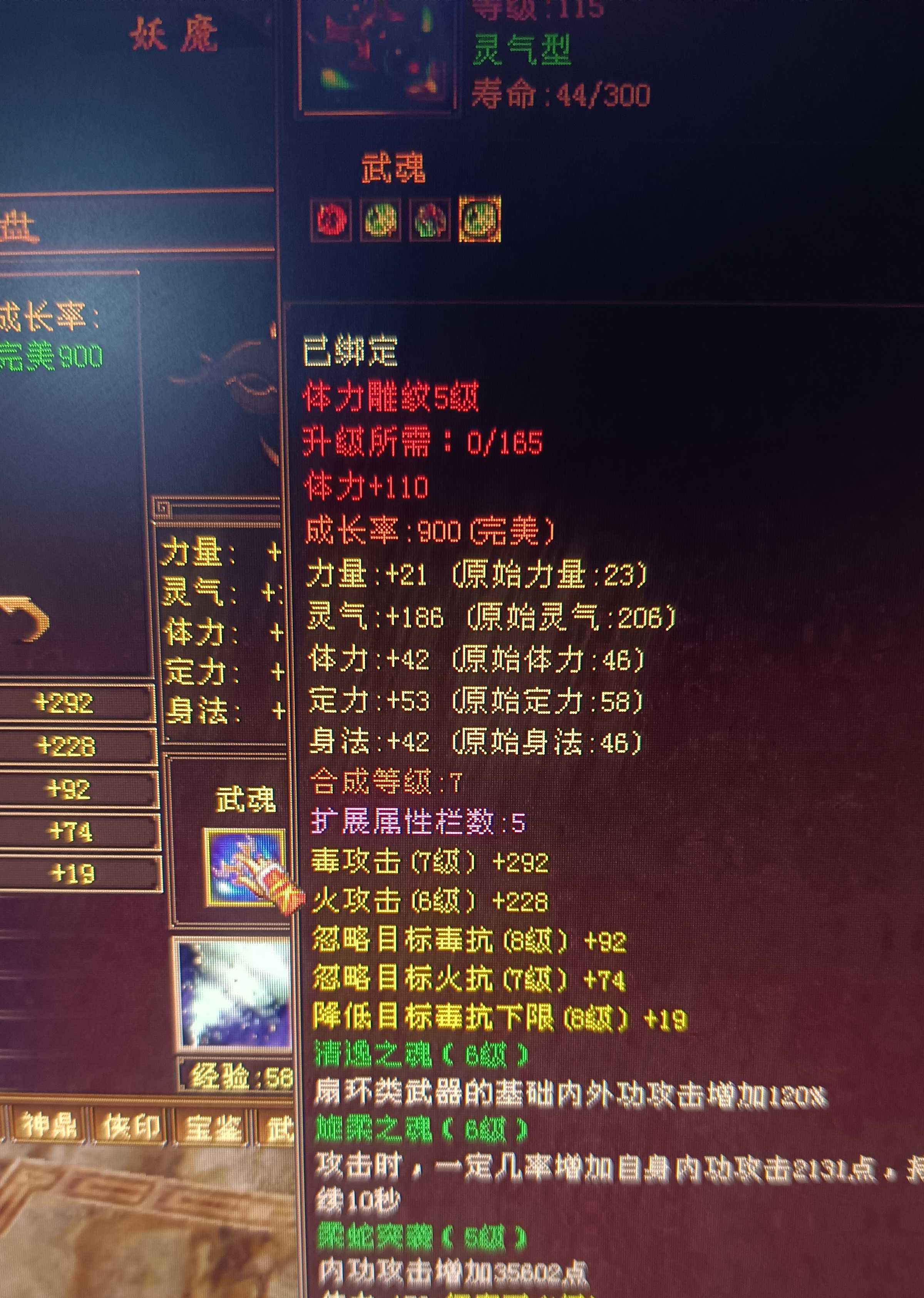 接下来就是洗武魂技能了,我最近突然一直在洗攻击+53+群攻。感觉这个几率梦里才有