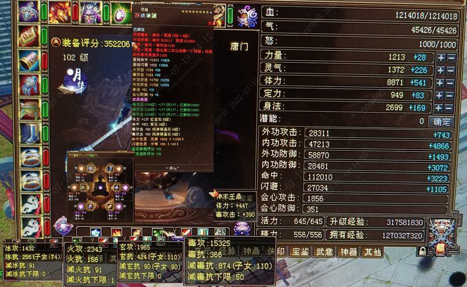 5体4属性102级副本**修小唐门,双五神鼎、体力雕纹7级其他6级、真元3个金色、6个橙色、3个紫色。全身八星、**修**减、总属性2.1万+,不花钱还怎么提升? ...