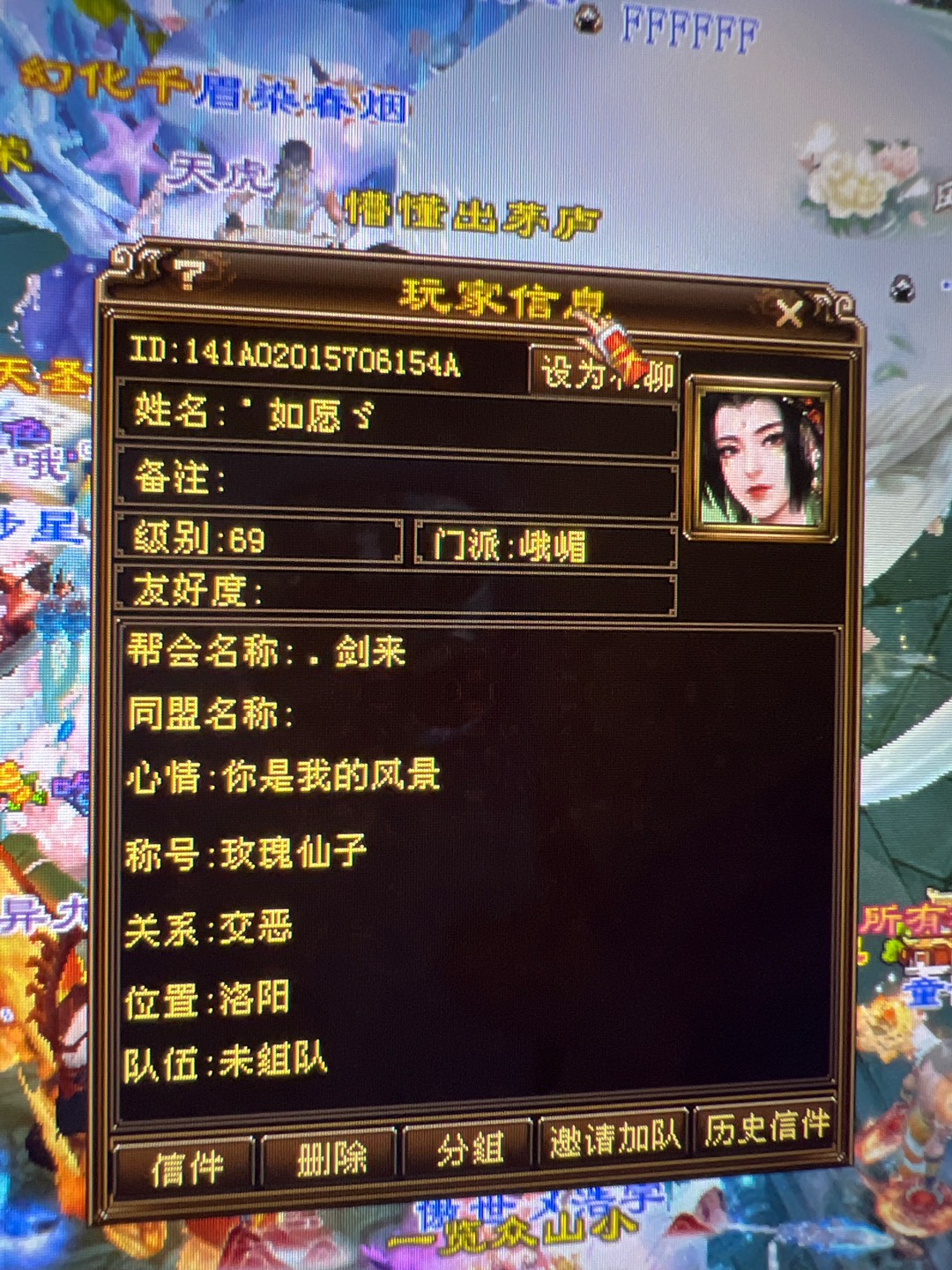 一个在老区的高手 根据多方八卦了解。该号主交个她玩的好的一个妹纸暂时打理。在某些原因情况现在这个妹纸拿着这号到处招摇。结识一个绝情谷大哥。跟大哥双宿双飞。(重要该号主:有cp一直没有离婚哦)真的是天龙八 ...