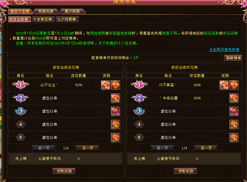 本帖最后由 是阿笙欸. 于 2022-7-29 16:57 编辑 今天官服更新了七夕花榜 我们区现在已经有大神冲榜了 所以你们有想要冲榜的吗