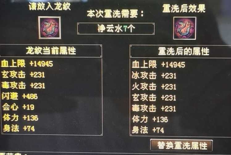 花了40多,5块钱换6000金币,然后忘了多少金币一组,洗出来了,不过是力量带体,换灵气或者身法就好了