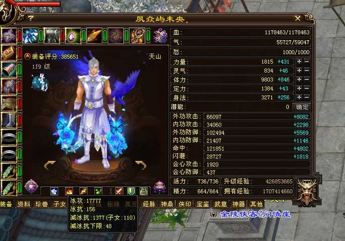 | 不算宝石,雕文,无字谱。八星171饰品,九星神器,龙纹,暗器武魂啥的子女全满,金色九级真元,应该是10853的属性吧,应该是有点偏差 |