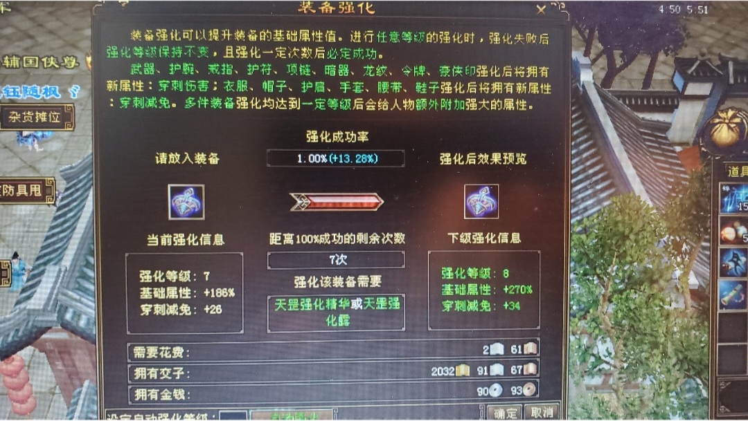 天龙的概率都是屁,主要看运气的,。,有时候强化2-3次就8了,,,一般时候就多了,,,