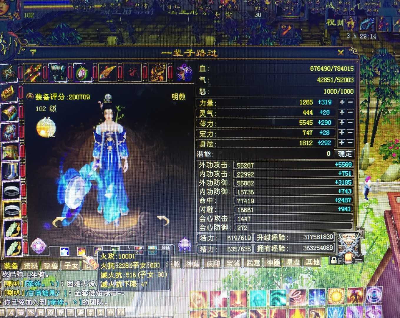 小明教,属性终于破万了。带附体能多加二百多属性
