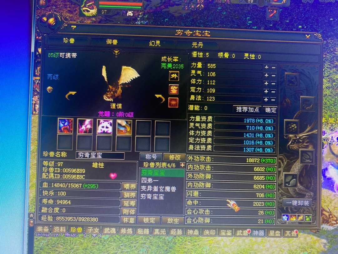 刚开始接触天龙,穷奇是我见过最炫的宝宝,大老虎插俩翅膀,如虎添翼名副其实,许久没玩,上来朋友也没少了,没事总得做点啥吧 刚好想到了就把这个梦一圆,希望能出个顶变高姿质 持续更新 ...