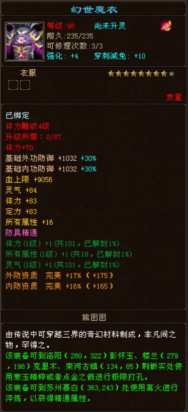 偶然做出来的的8星衣服,不是很懂装备让大家看看这个装备如何,(顺便问一下峨眉装备要带什么属性的)